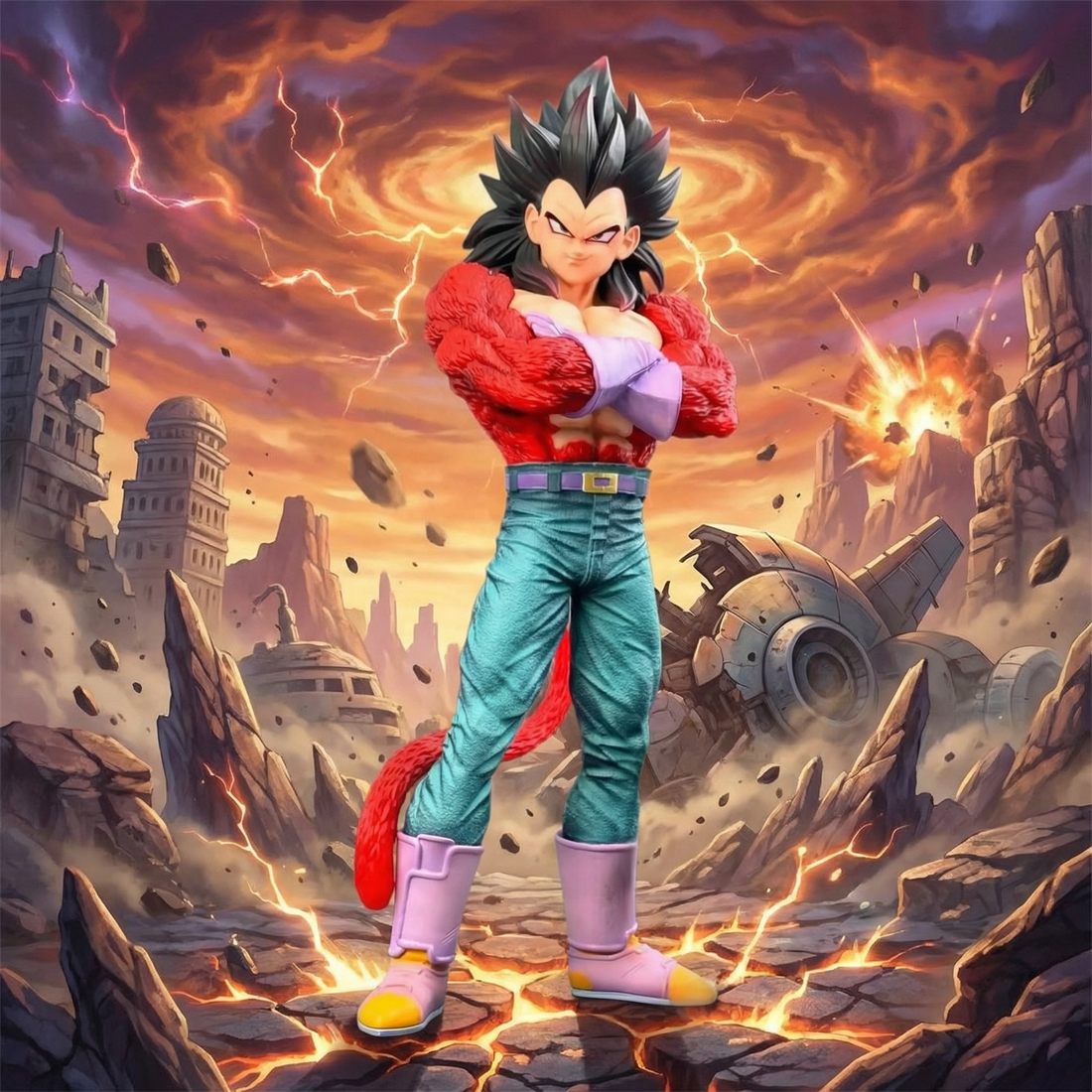 Unleash the primal power of the Saiyan elite with this stunning Super Saiyan 4 Vegeta...