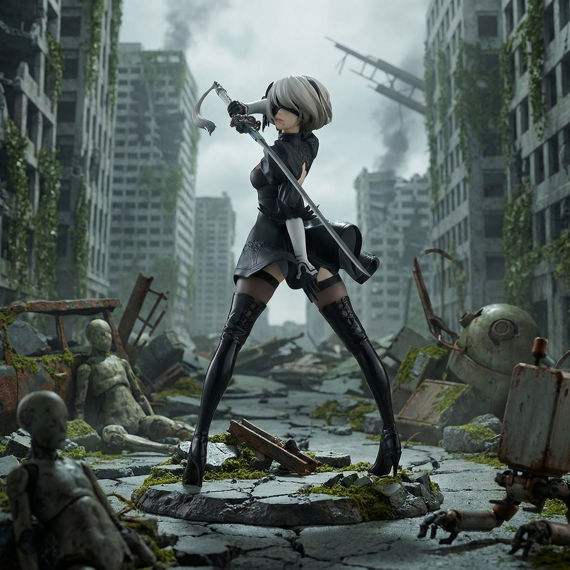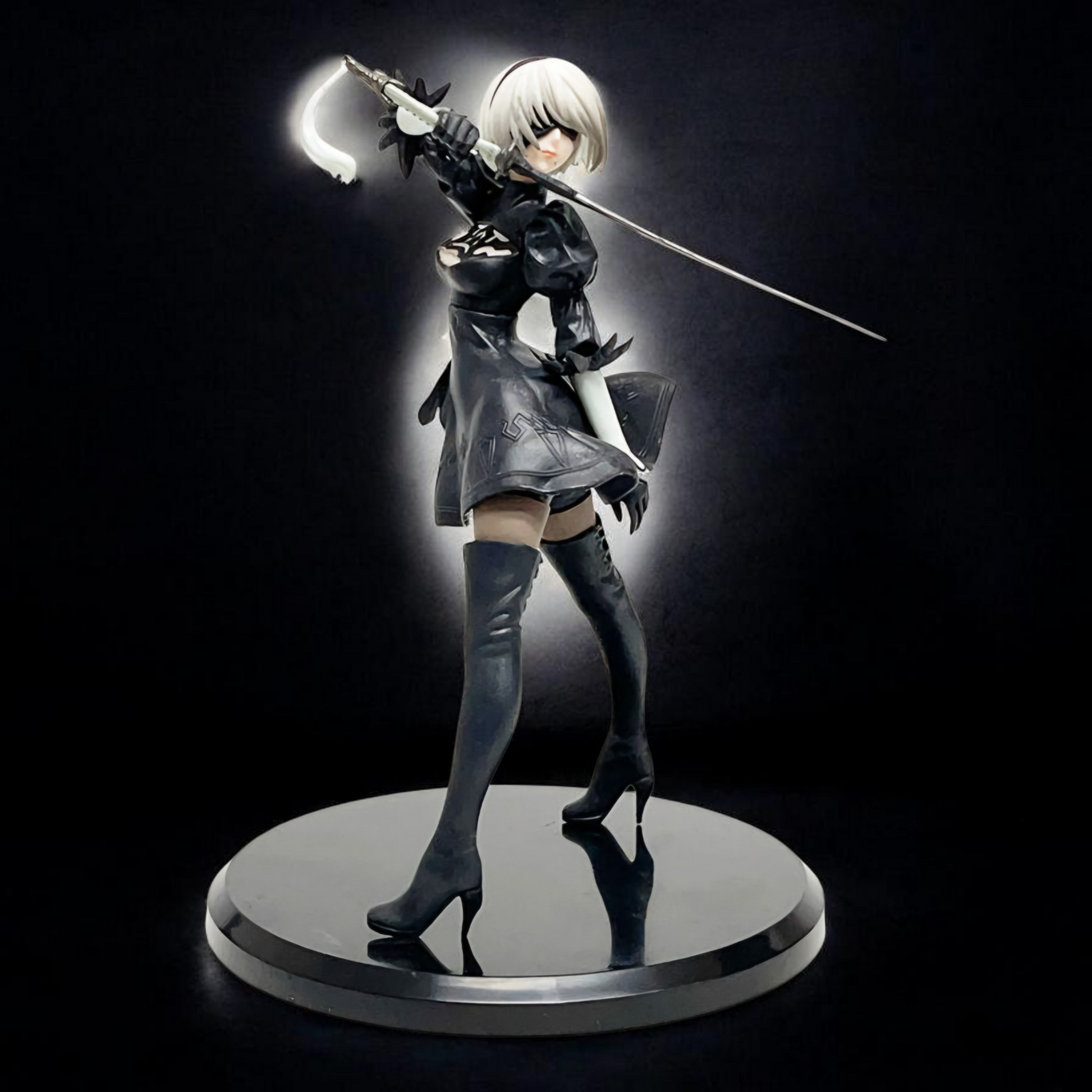 With enhanced height and dynamic sculpting, this 2B figure emphasizes both elegance and power. The strong stance and flowing design elements make it a visually striking piece that stands out in any premium anime or gaming collection.