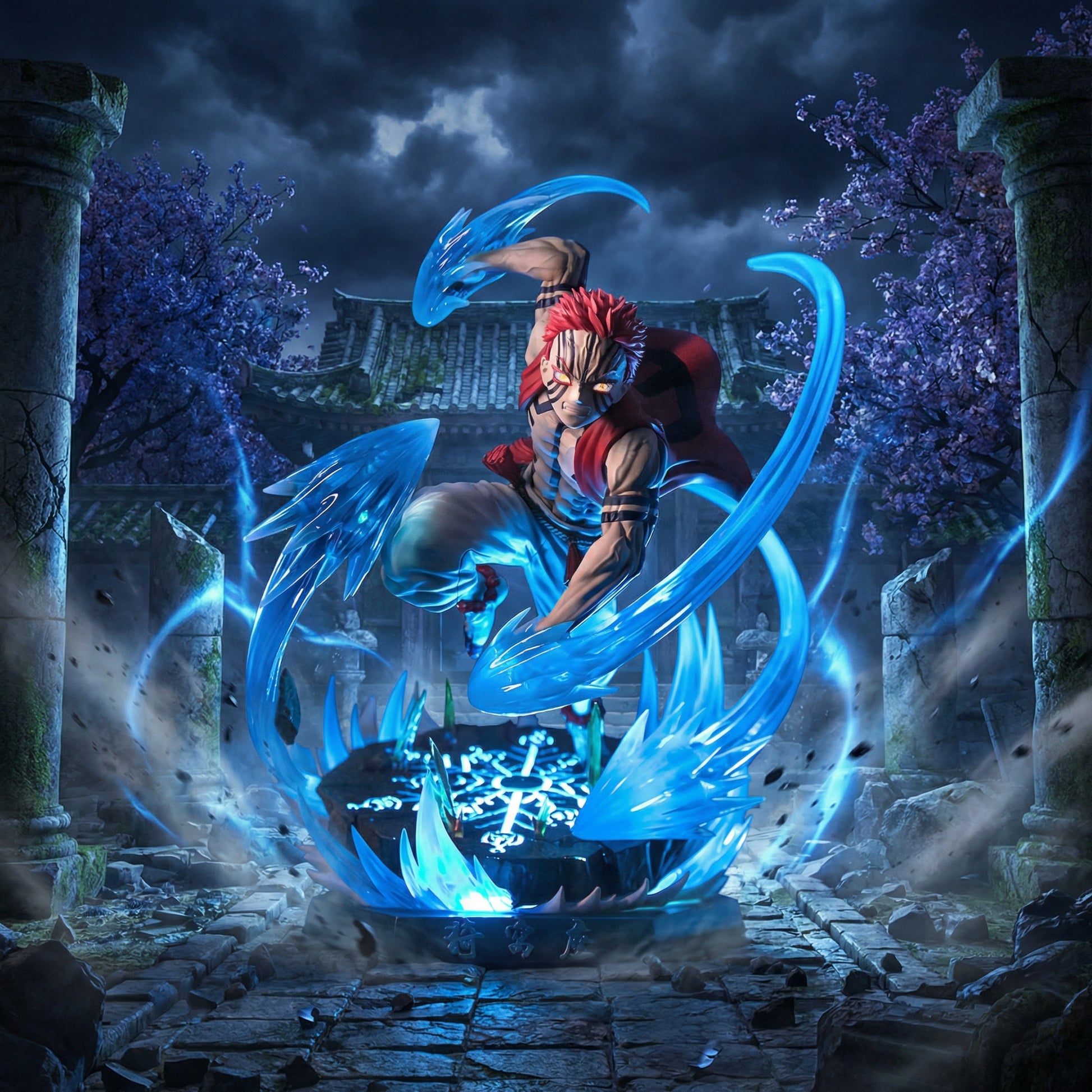 The LED-enhanced energy effects elevate this Akaza figure beyond a standard statue. The glowing base combined with dynamic sculpting recreates the intensity of his combat scenes, making it a must-have for Demon Slayer fans.