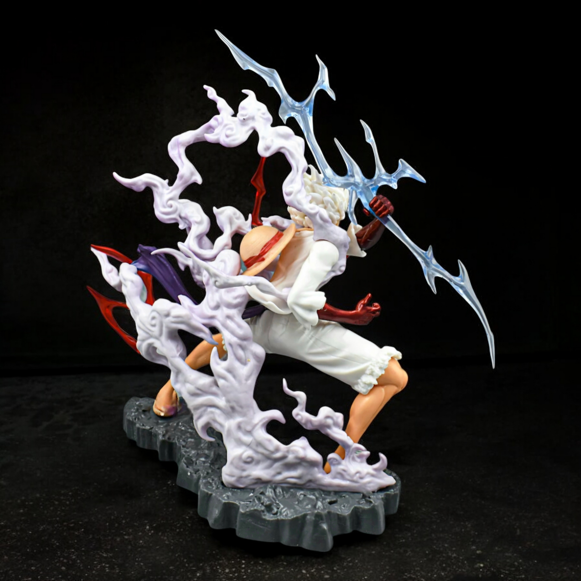 This figure showcases Gear 5’s signature wild white hair, fierce expression, and exaggerated combat energy. The sculpted lightning effects, swirling smoke-like elements, and powerful stance create a sense of motion frozen in time. Every angle delivers visual drama, making this statue a centerpiece-level collectible.