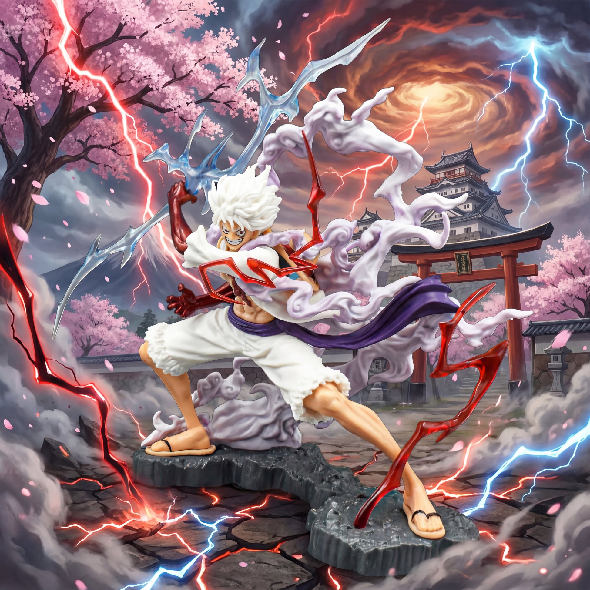 This Gear 5 version stands out due to its expanded scale and complex effect design. The lightning elements and swirling aura add depth and aggression, transforming the figure into a high-impact display piece rather than a standard shelf model. Ideal for collectors who want maximum visual intensity.