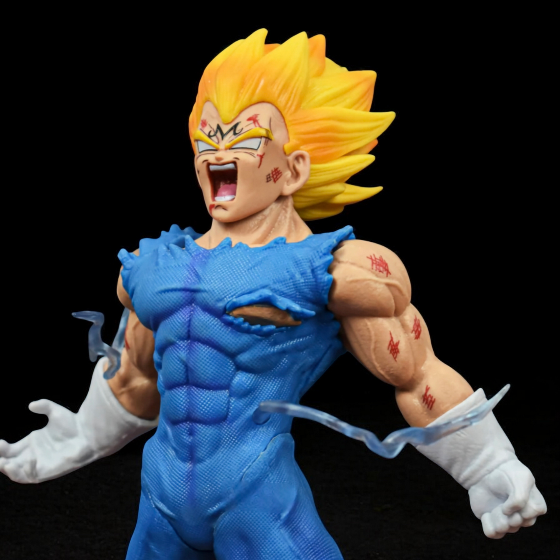 This figure captures Majin Vegeta’s most emotional and iconic moment — his ultimate power-up before his final atonement. The roaring expression, torn outfit, and lightning effects create an intense cinematic presence, making it a true centerpiece for any Dragon Ball display.